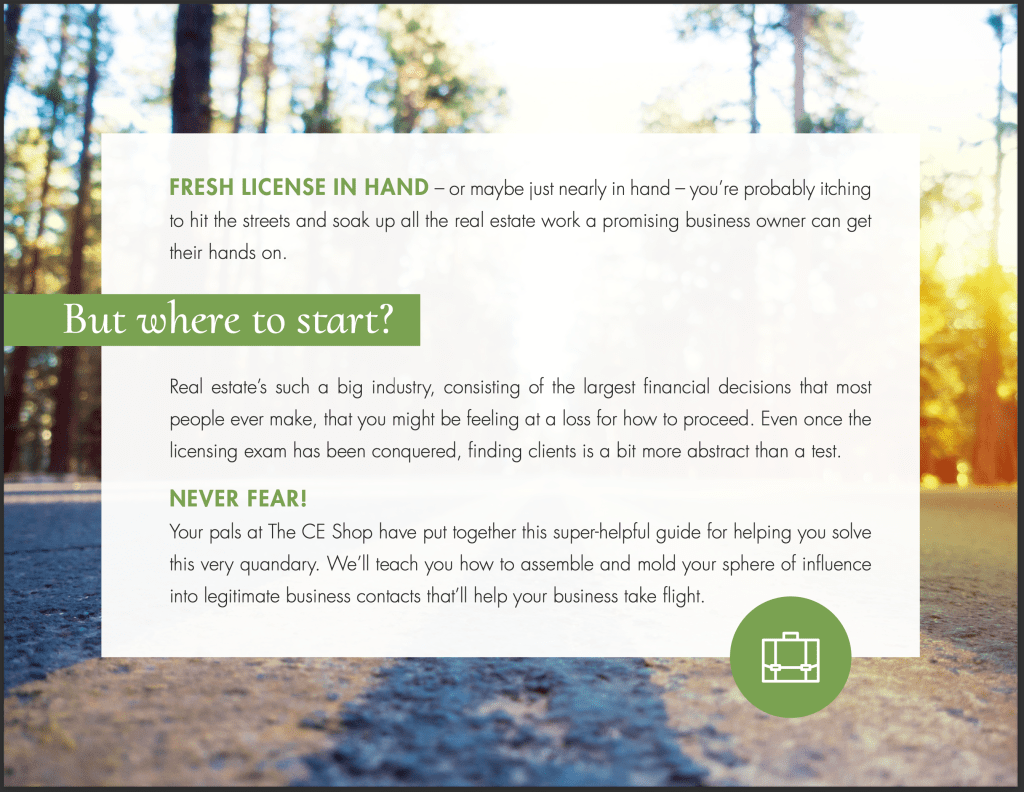 One of our first ebooks was Assembling Your Sphere of Influence, which taught agents how to reach out to the people that were already in their lives. By appealing to friends, family, and even the people in your kid’s PTA, you can be sure that everyone who knows your name also knows that you’re a licensed real estate agent. Once they’re ready to purchase a new house, guess who they’ll think of first?